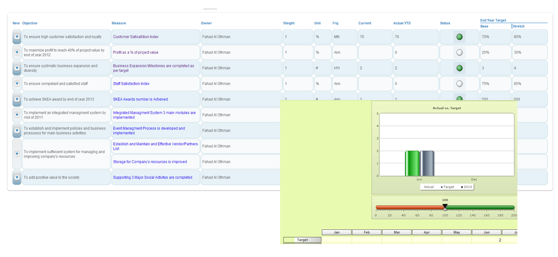 Objectives have to be expressed in measurable terms and they must be assigned to a specific person with the authority and accountability for their execution. If so, their achievement can be tracked on a monthly / quarterly basis and actuals can be plotted against the plan to make the level of achievement visible to all concerned parties. Performance Measurement contributes to improving staff morale if positive achievement is demonstrated, and allows for timely corrective action when targets are not met.