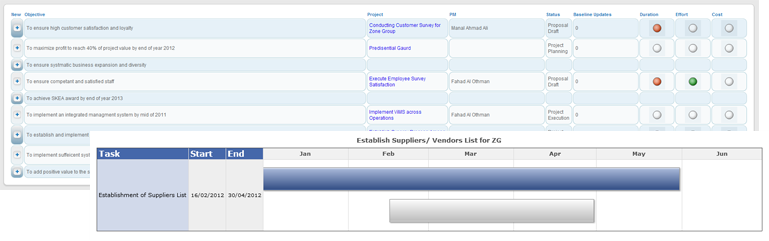 ViMS provides a project monitoring system whereby management can initiate, plan, and list all projects and monitor how effective each of them is performing with regards to the project’s three key performance indicators - cost, effort and time.